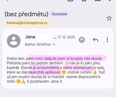 A hlavně můžete e-book dát přečíst vašemu partnerovi. Je psaný i pro něho, jeho jazykem. To vám pomůže s ním začít celou situaci společně řešit.